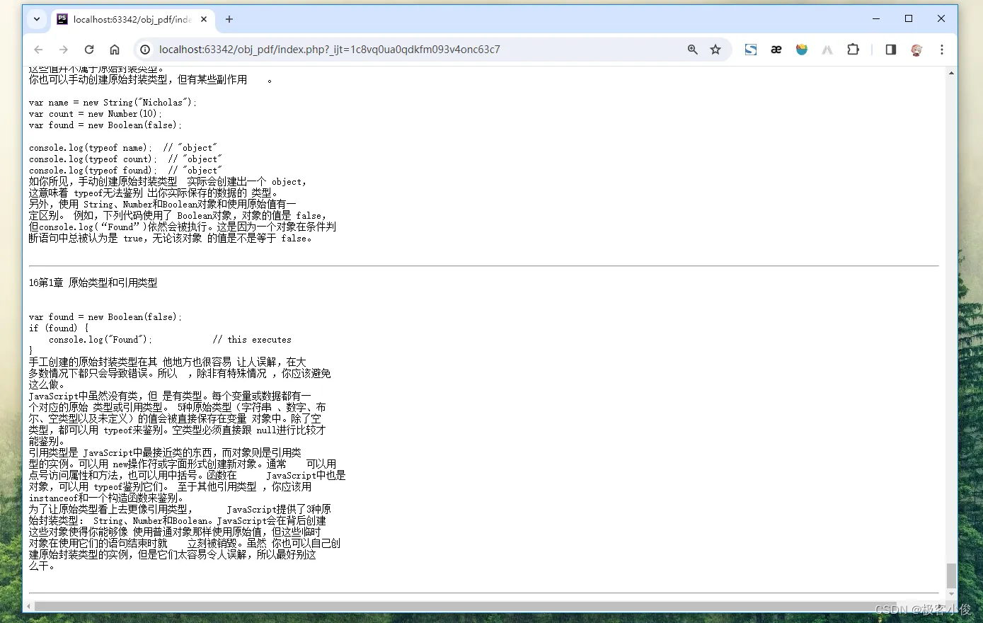 <?php //引入autoload.php include 'vendor/autoload.php'; //创建Parser对象 $parser = new \Smalot\PdfParser\Parser(); //提取PDF文件 $pdf = $parser->parseFile('file/test2.pdf'); //获取所有页 $pages = $pdf->getPages(); //循环所有页 foreach($pages as $key=>$page){ //格式化 echo "<pre>"; echo $pages[$key]->getText(); echo "</pre>"; //每一页分隔符 echo "<hr>"; } ?>